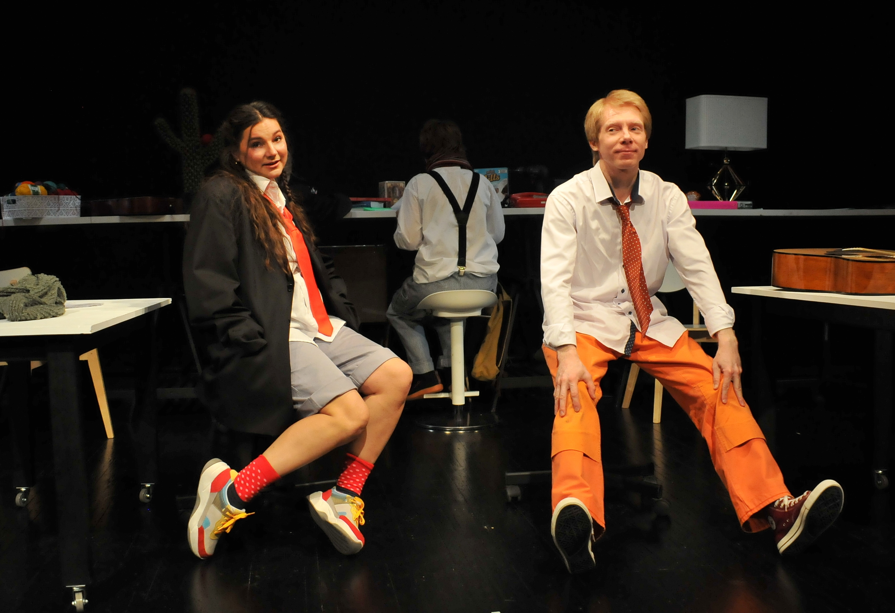В спектакле герои выражают эмоции не только через текст, но и с помощью ударной установки, гитары и других инструментов, которые имеют свой собственный голос.