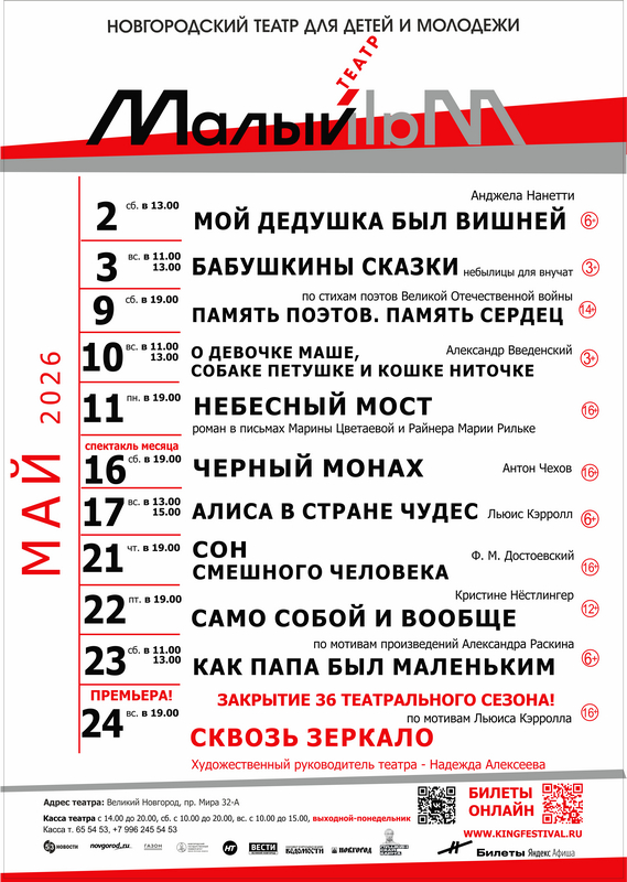 — 6 мая не забываем купить билеты дешевле в течение одного дня — акция «Первая среда месяца» со скидками на детские и взрослые спектакли.